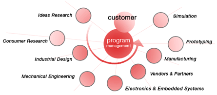 The Program Manager draws up the vision to drive the program. The Program Manager drives periodic interactions with the customer as well as being responsible for managing in-house resources.